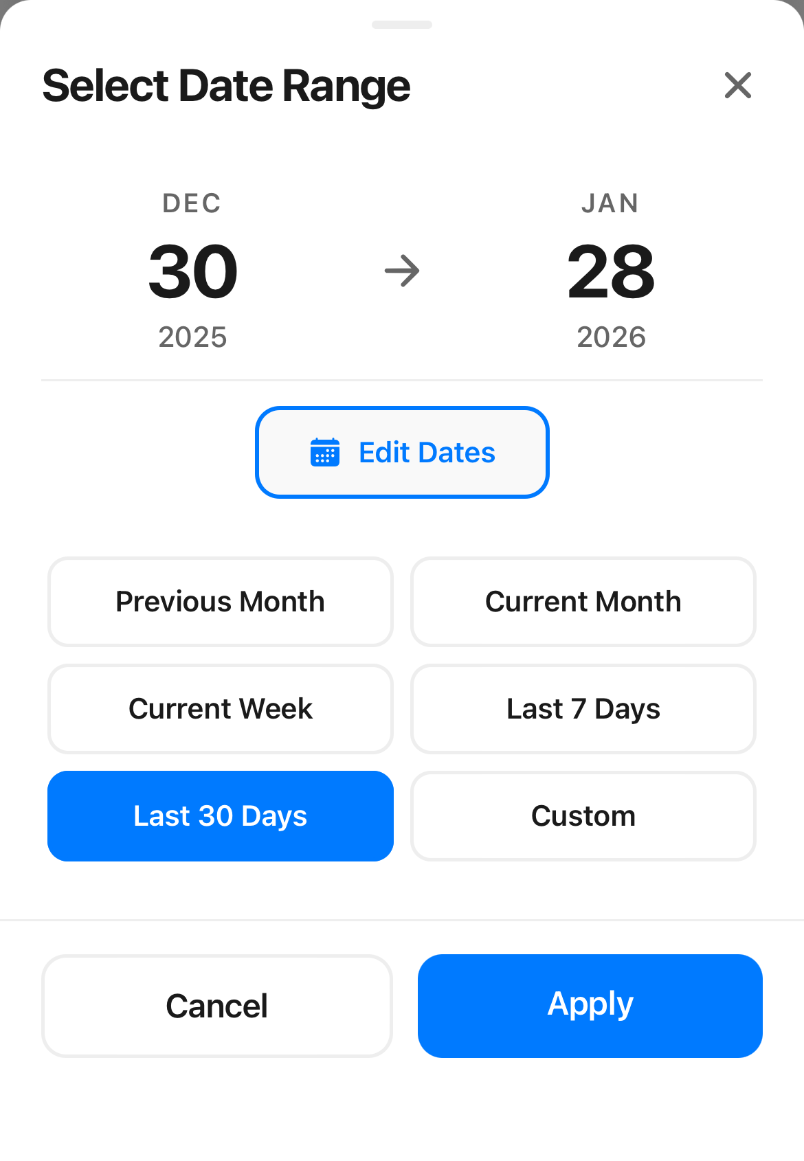 We added a few new presets, including Current week and Current month, that better align with how you use the app and your pay periods.